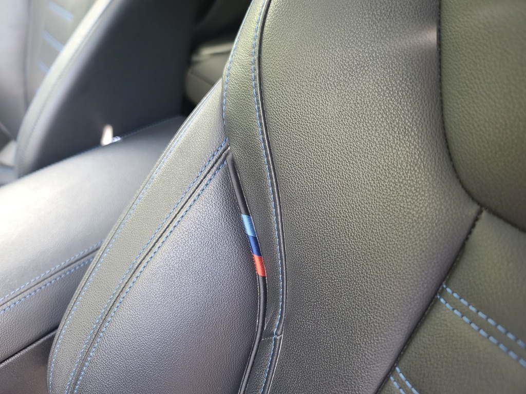 ABS, ESP, 6 airbags, sellerie cuir Vernasca avec surpiqûres bleues, planche de bord similicuir (Sensatec), sièges sport Advanced électriques à mémoire et chauffants + lombaires élect., Kit aérodynamique M avec suspensions sport + volant M cuir, toit ouvrant panoramique vitré, GPS Professional Europe écran tactile 10,25' + Apple Car Play + disque dur 32GO + combiné numérique, feux full LED directionnels + feux de route adaptatifs, hayon électrique (ouverture avec le pied) + lunette arr. indépendante + Pack Compartiment à bagages (banquette rabattable électriquement depuis le coffre, rails antiglissement), jantes alliage 18' Style 790 M bicolore, radars de parking av/arr. + caméra de recul & surround view (caméras 360°) + stationnement automatique + AutoReverse (assistant de marche arrière), Active Guard Plus (assistant maintien de voie, freinage d'urgence automatique), vitres arr. surteintées, rideaux pare-soleil vitres arr., vitrage insonorisant, inserts aluminium Tetragon, régulateur/limiteur de vitesse, infodivertissement tactile commandes au volant et commandes vocales + 4 prises USB avec système de haut-parleurs Hi-Fi, bluetooth, climatisation automatique quadrizone (avant + arr.), chauffage auxiliaire, 4 vitres & rétroviseurs électriques, feux et essuie-glaces automatiques, rétros ext. rabattables électriquement, rétroviseurs int. & conducteur électrochromes (jour/nuit automatique), accès & démarrage mains-libres, barres de toit noir brillant, banquette arr. rabattable 40/20/40, accoudoirs centraux av & arr., isofix, shadow line brillant Bmw Individual, pack éclairage (avec choix des couleurs), frein de parking automatique, sélecteur de modes de conduite, peinture métallisée.