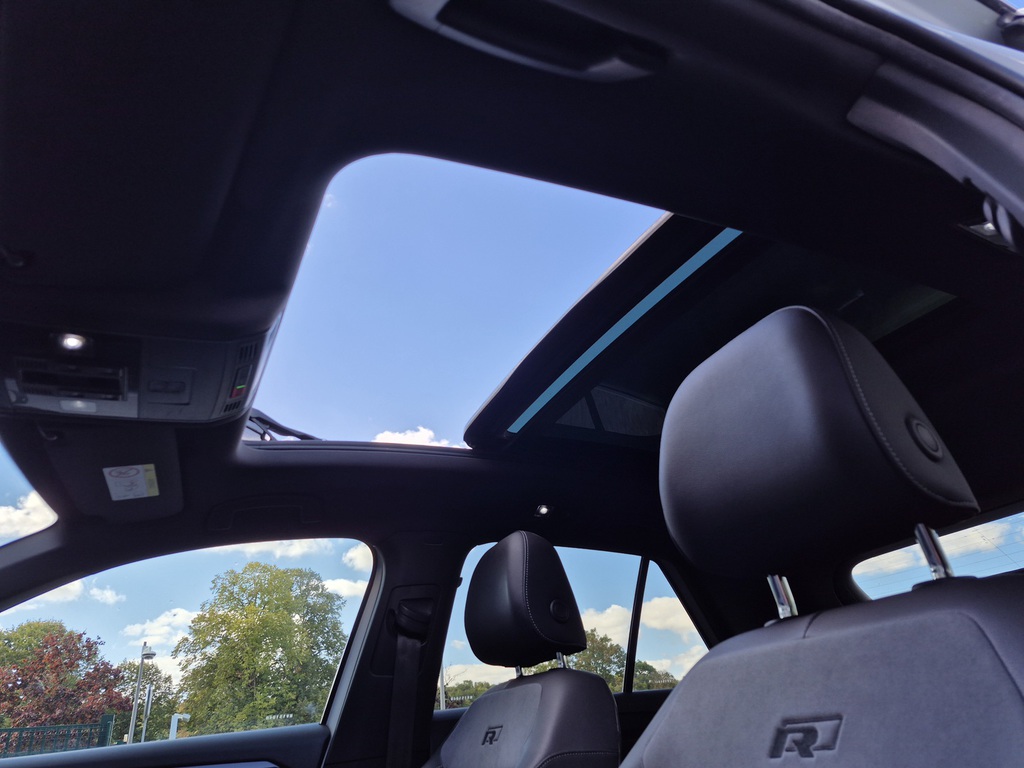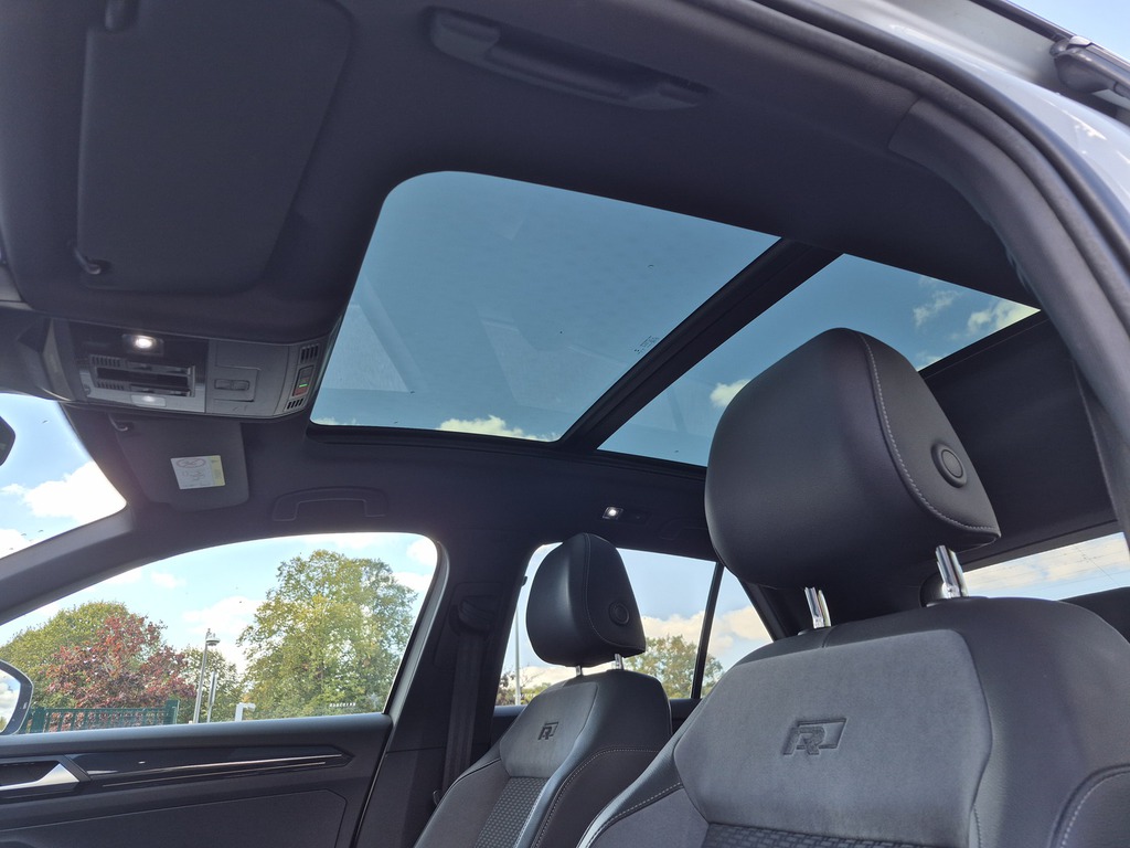 ABS, ESP, 6 airbags, GPS tactile Europe (Discover Media), Virtual Cockpit (compteurs écran TFT), radars de stationnement av/arr. + caméra de recul + Park Assist (la voiture se gare seule), toit vitré panoramique ouvrant, Jantes alliage 19' Suzuka, peinture bi-colore (toit et rétroviseurs noirs), sièges sport cuir Alcantara tissu siglés R-Line avec support lombaire, accès & démarrage mains-libre, Hayon électrique, Pack R-Line (pédalier alu, pack carrosserie, sièges sport, étriers de freins rouges, vitres arr. surteintées, etc.), pack éclairage d’ambiance led, régulateur de vitesse adaptatif AAC (suit le véhicule qui vous précède), boîte automatique 7 rapports avec palettes au volant et Auto-Hold, freinage d'urgence automatique, climatisation automatique bizone, feux full LED adaptatifs, aide au maintien dans la voie, autoradio cdes au volant + prises USB, connectivité bluetooth + CarPlay/Android Auto, 4 vitres électriques automatiques, rétroviseurs rabattables électriquement à réglages électriques et dégivrants, rétroviseur int. électrochrome (jour/nuit auto), détecteurs d’angles-morts, feux et essuie-glaces automatiques, volant cuir, aide au démarrage en côte, isofix, banquette 1/3-2/3 et siège passager av. rabattable, surtapis Volkswagen siglés R-Line, etc.